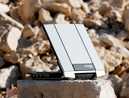 The Explorer 710 is unlike other portable BGAN terminals in that the antenna may be separated from the transceiver and be mounted on an external pole mount, up to 100 meters away with the optional antenna cable. This setup is ideal for permanent installations where the antenna may need to be located in an awkward location.